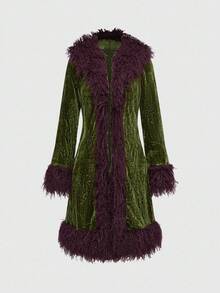 Hippie Hippie Style Women's Colorblock Faux Fur Jacket