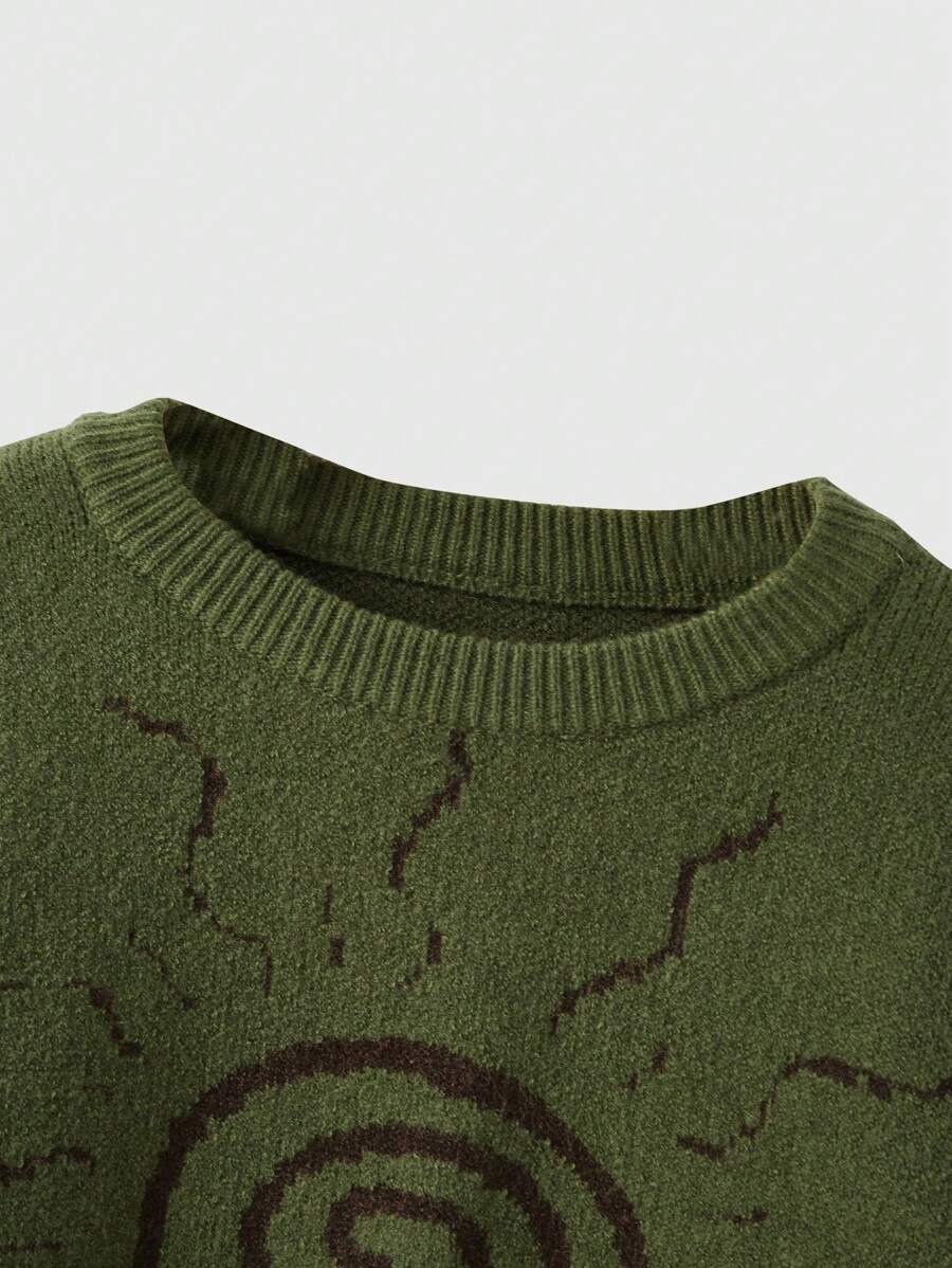 Hippie Sun & Star Pattern Drop Shoulder Sweater