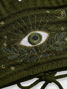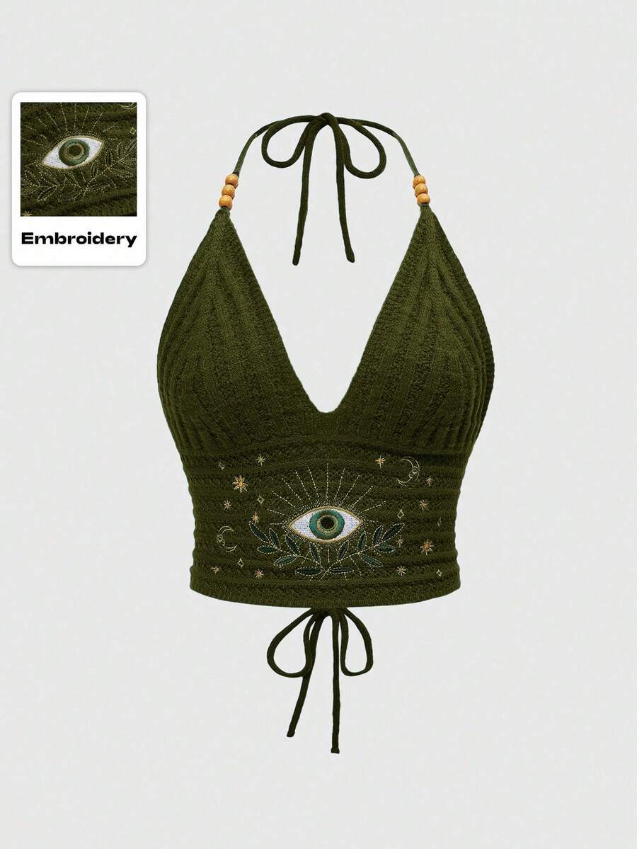 Hippie Hippie Vacation Style Eye, Moon & Star Embroidered Blue-Green Women Beaded Top