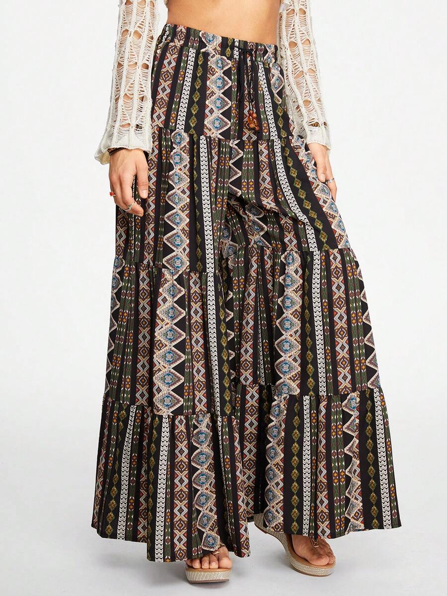 Hippie Vacation-Style Multiple Layer Wide-Leg Pants With Patchwork