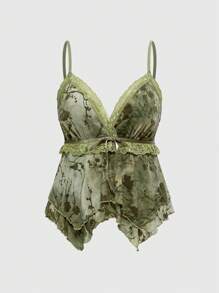 Hippie Women Lace Patchwork Asymmetric Hem Allover Print Cami Tank Top