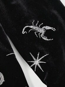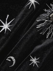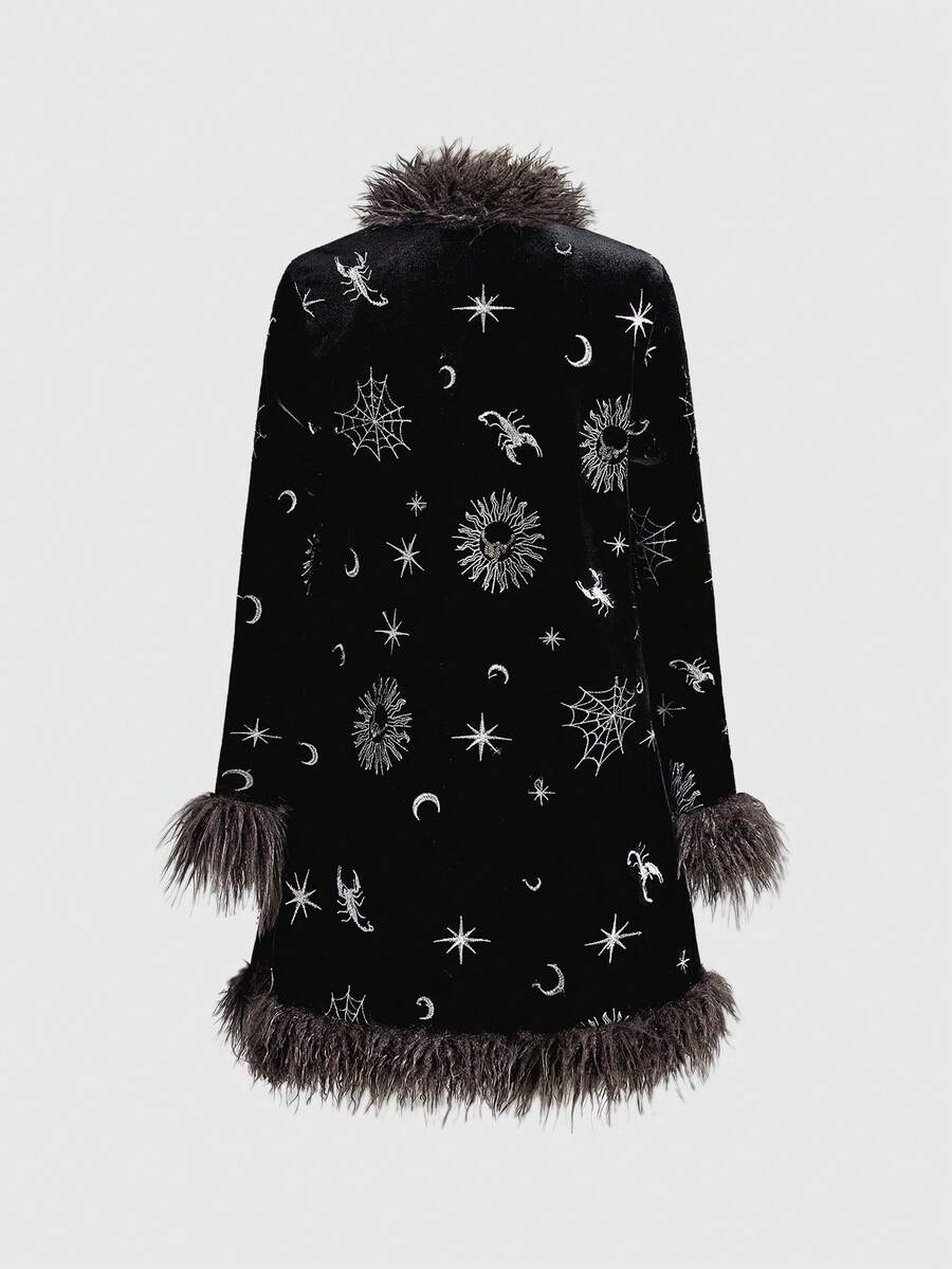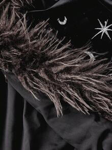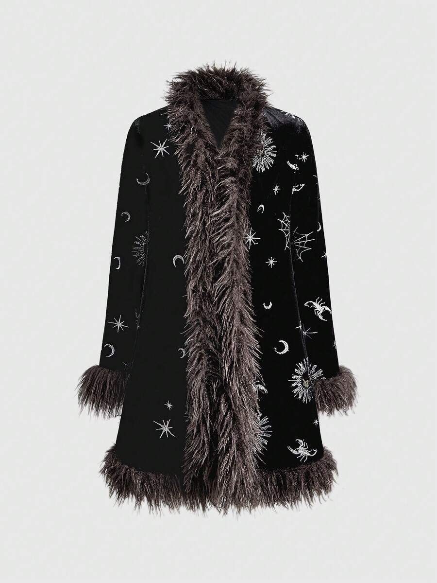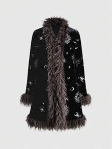 Hippie Women's Moon & Star Sequin Embroidered Faux Fur Jacket