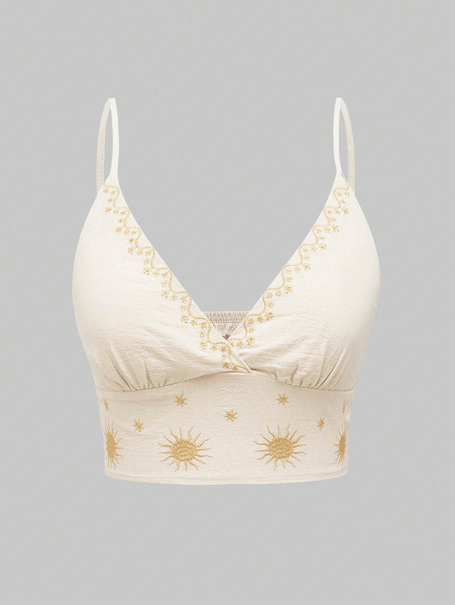 Hippie Women's Summer Sun Embroidery Crop Top Camisole