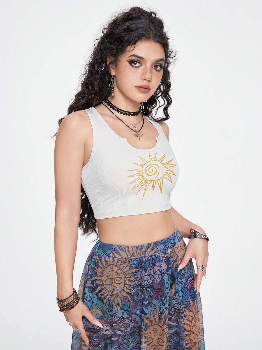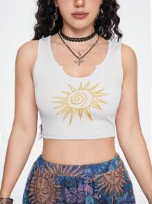 Hippie Women's Swirl Sun Printed Boho Tank Top
