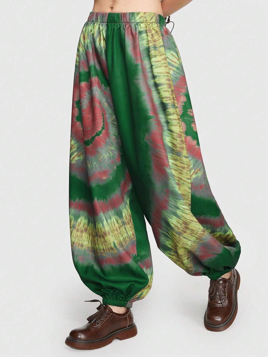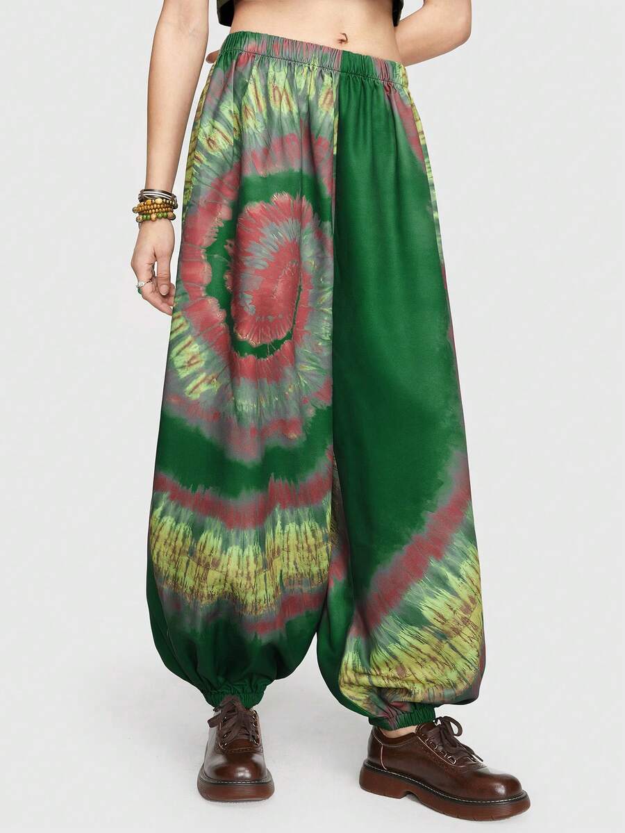 Hippie Women's Tie Dye Loose Fit Elastic Cuff Pants