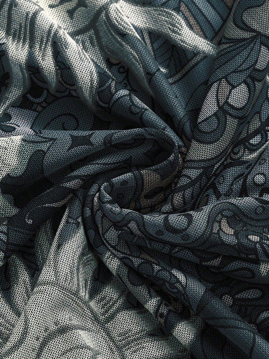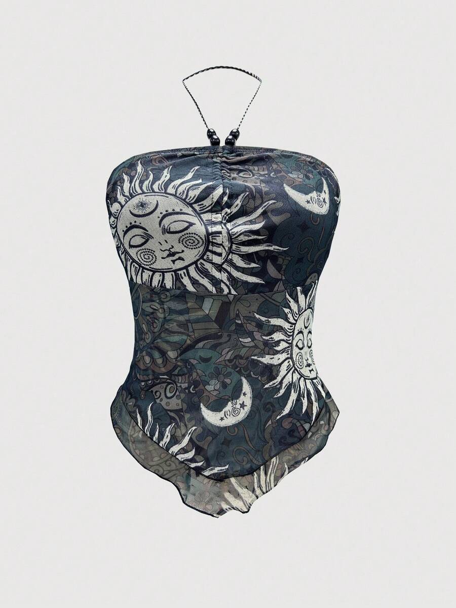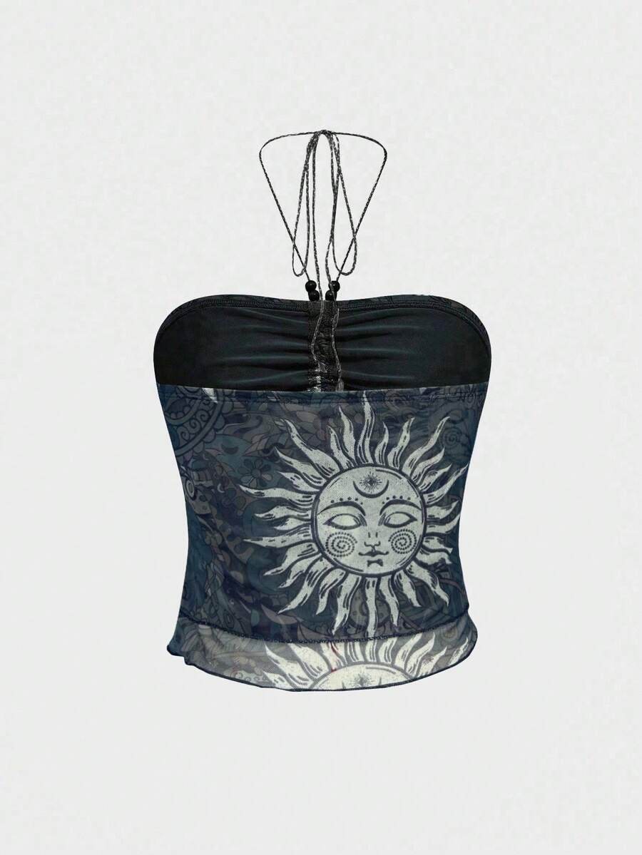 Hippie Y2K Celestial Motif Allover Print Top And Mini Skirt 2 Pieces Set For Women