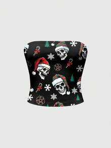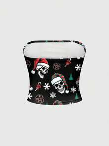 Goth Holiday Christmas Skeleton Colorful Lights Sexy Bandeau Top For Women