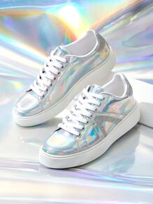 Holographic Lace-up Front Skate Shoes