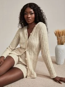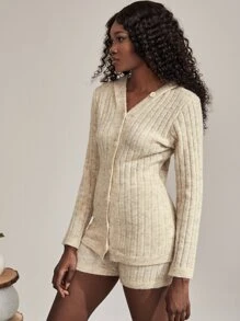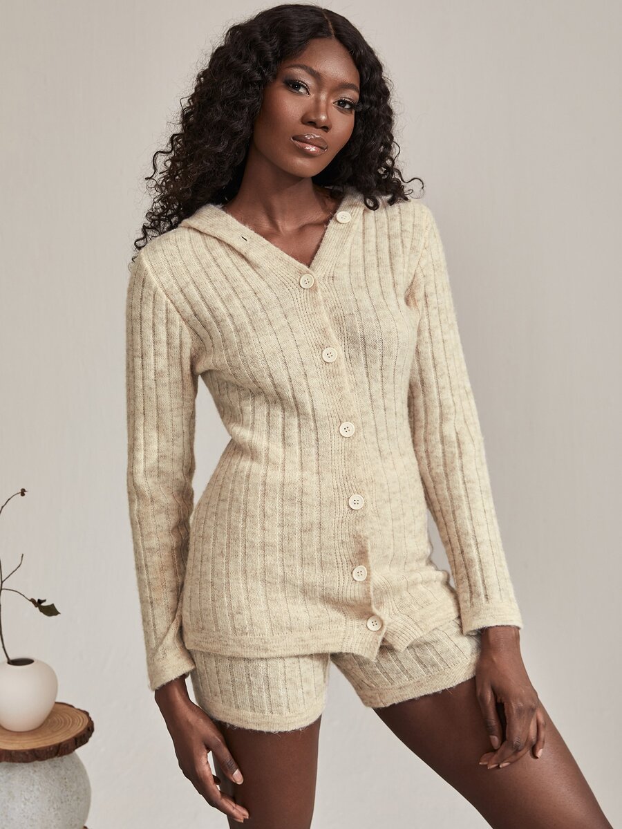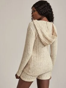 Hooded Ribbed Knit Cardigan & Shorts