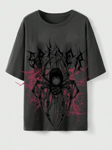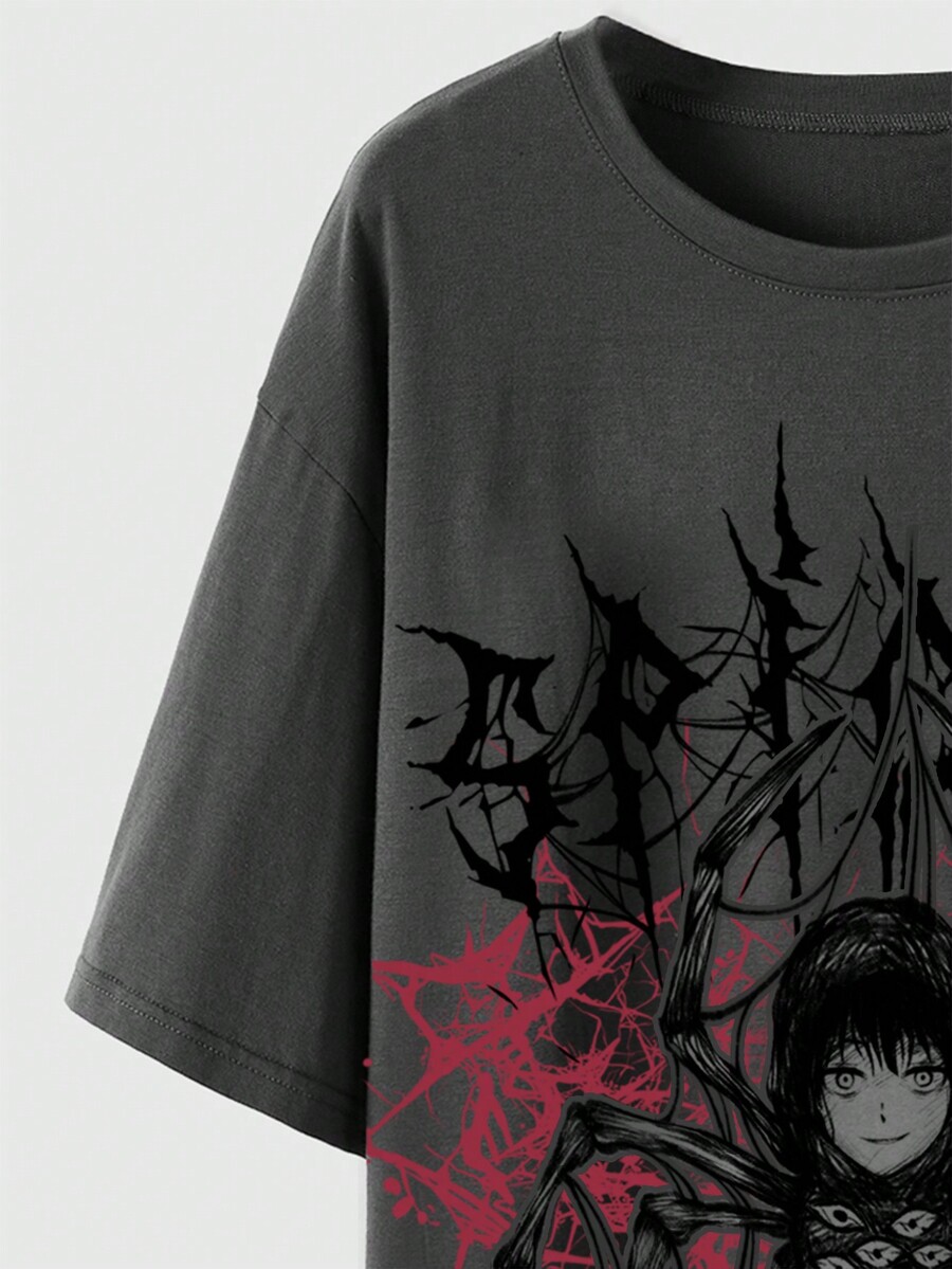 Horror Anime Spider Print Short Sleeve T-Shirt