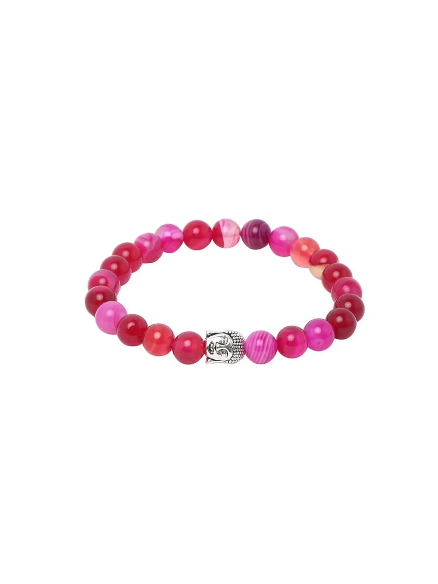 Hot Pink Network Stone Beaded Buddha Head Stretch Charm Bracelet