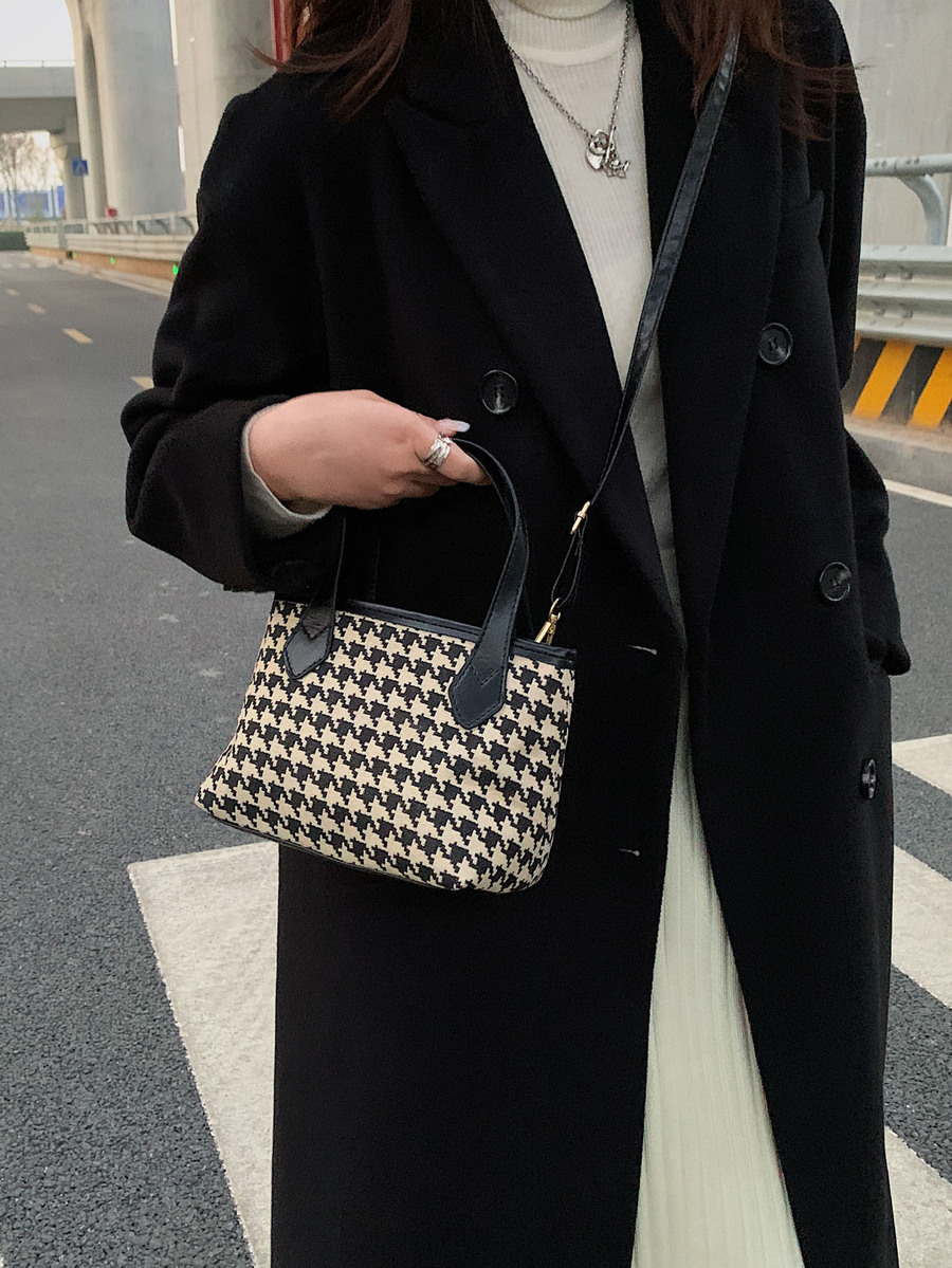 Houndstooth Graphic Satchel Bag