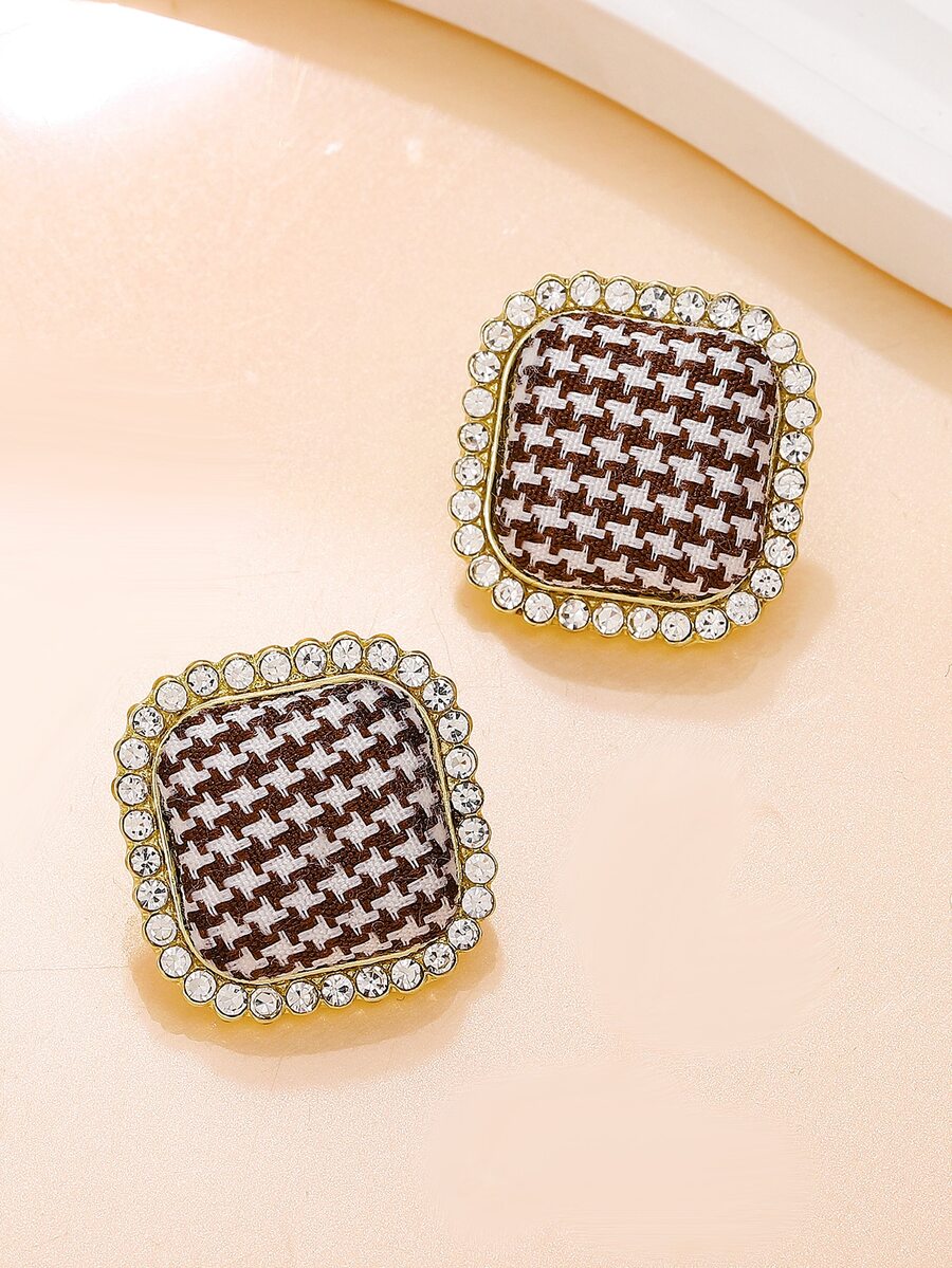 Houndstooth Pattern Rhinestone Decor Square Stud Earrings