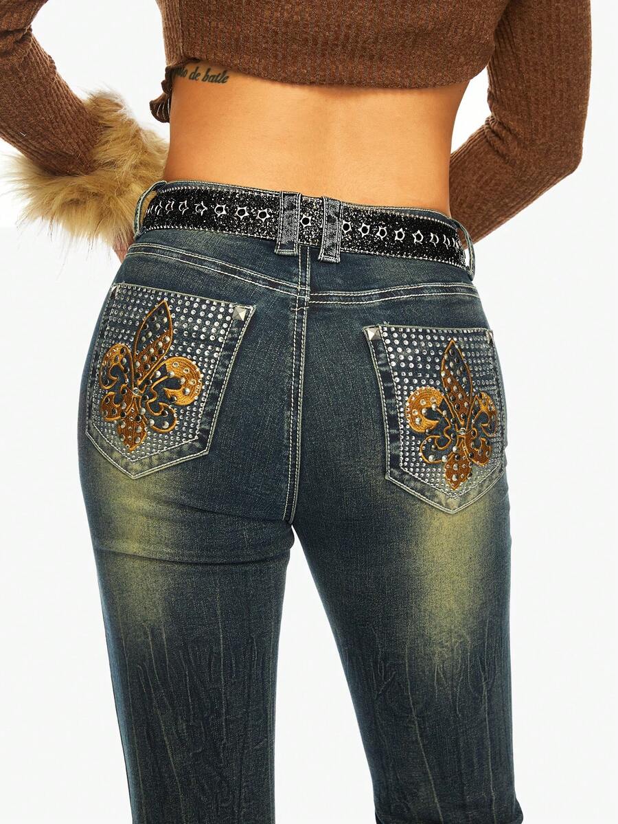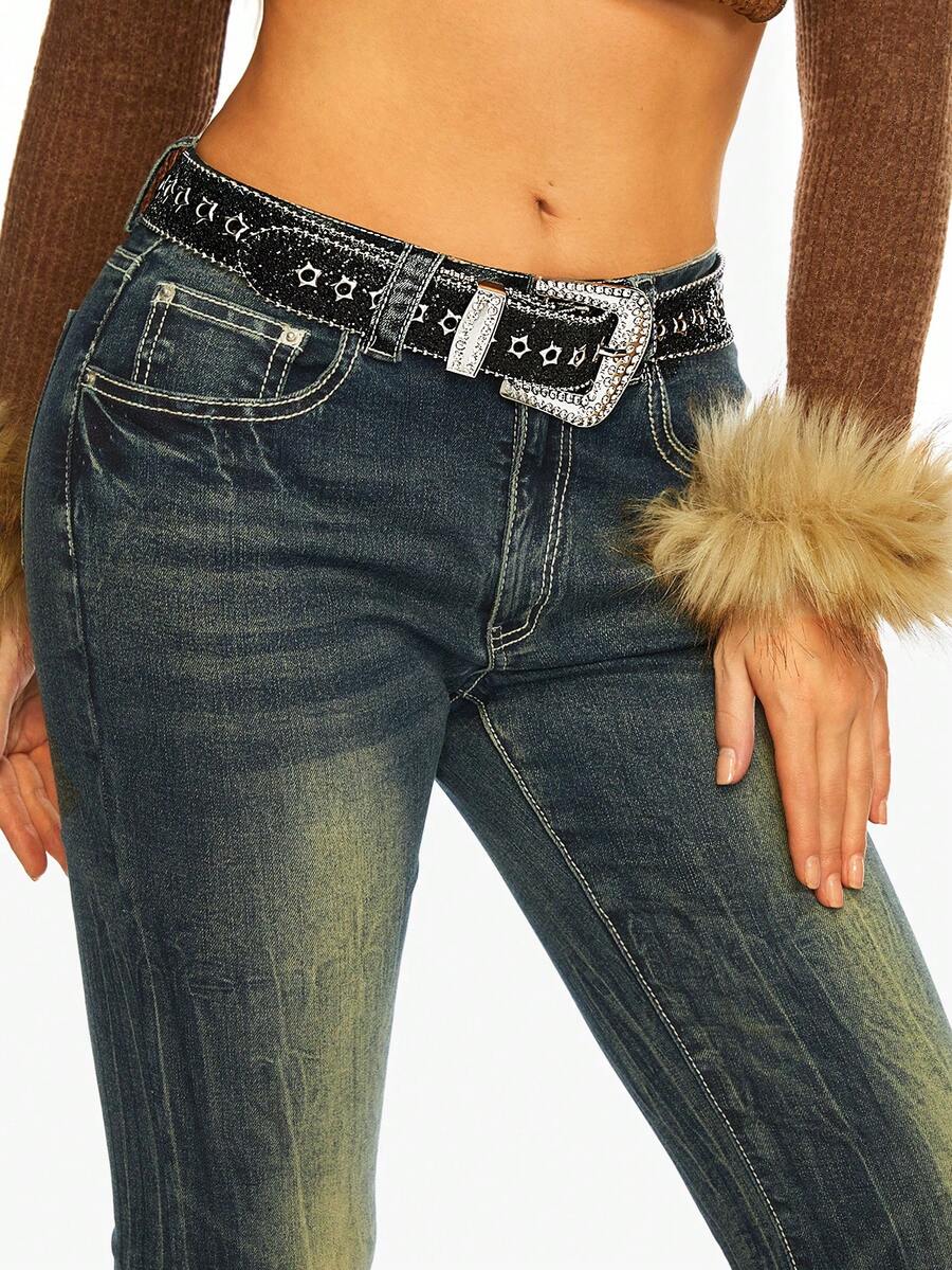 J-Fashion 1pc Gothic Rhinestone Pentagram Studded Belt, Y2K Style Fashion Crystal Leather Belt, Personalized Outfit Accessory