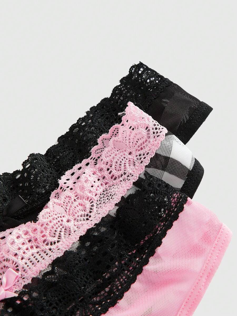 J-Fashion 3pcs Y2K Gyaru Style Zebra Print Mesh & Lace Colorblock Thongs Panties Set