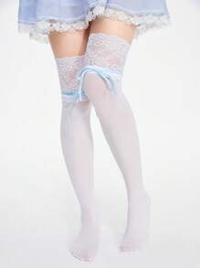 J-Fashion Ballet-Style Lace Bowknot Knee-High Socks For Girls