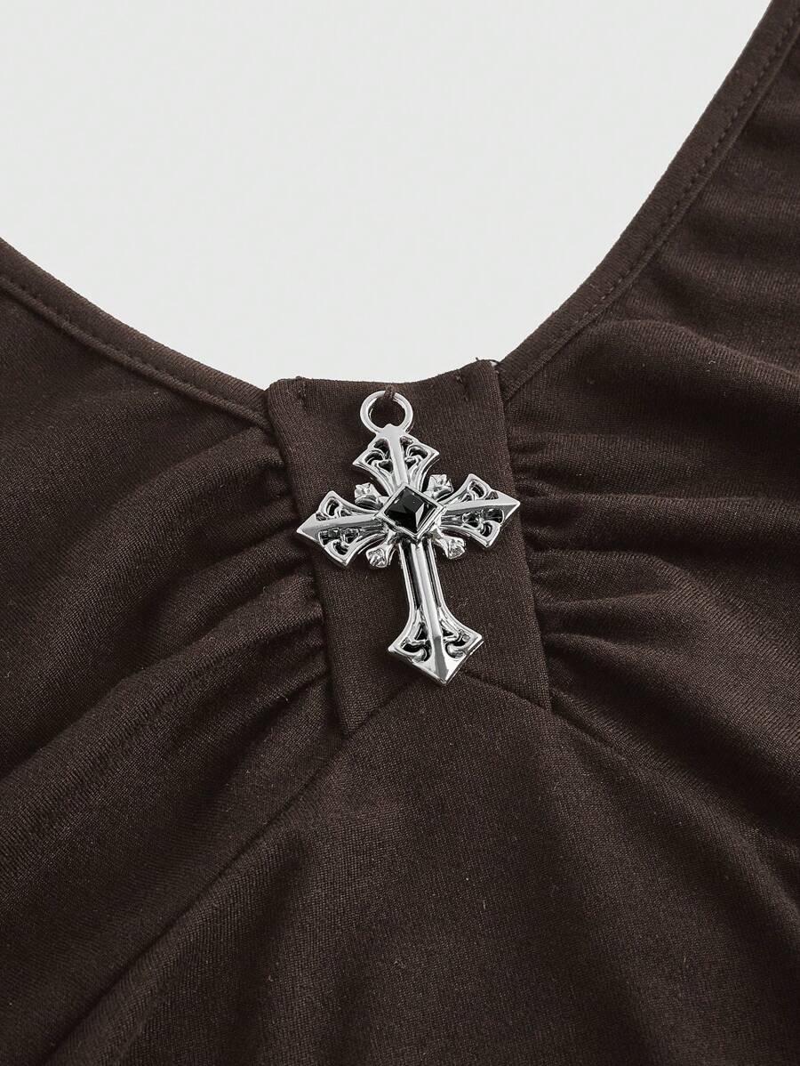J-Fashion Cross Punk Decor Multi-Layer Necklace Mini Dress