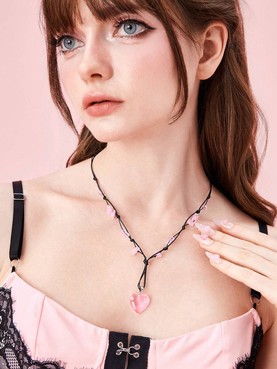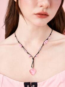 J-Fashion Cute And Sweet Braided Cord Pendant Necklace