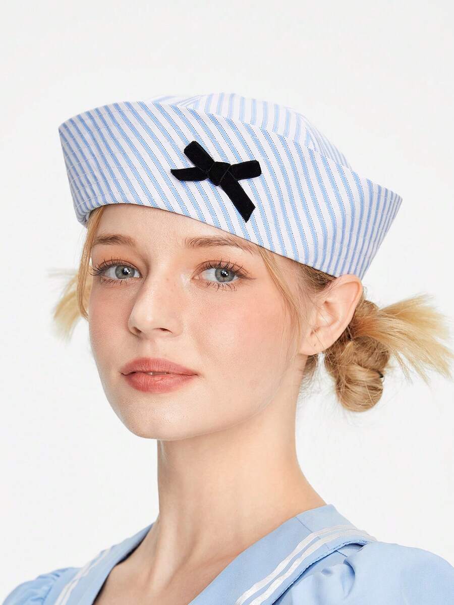 J-Fashion Cute And Unique Bow-Knot Sailor Cap, Versatile Sweet Girl College Style Beret