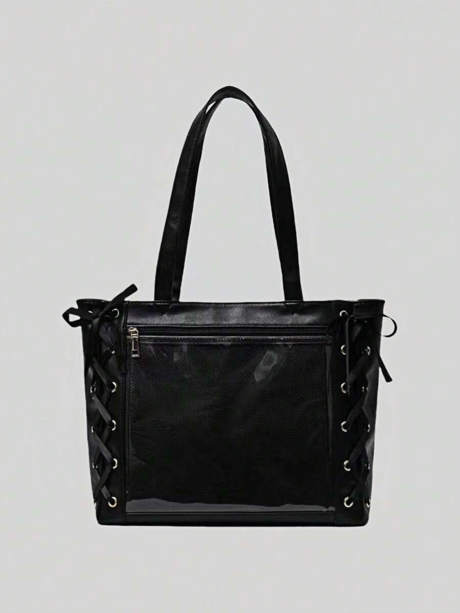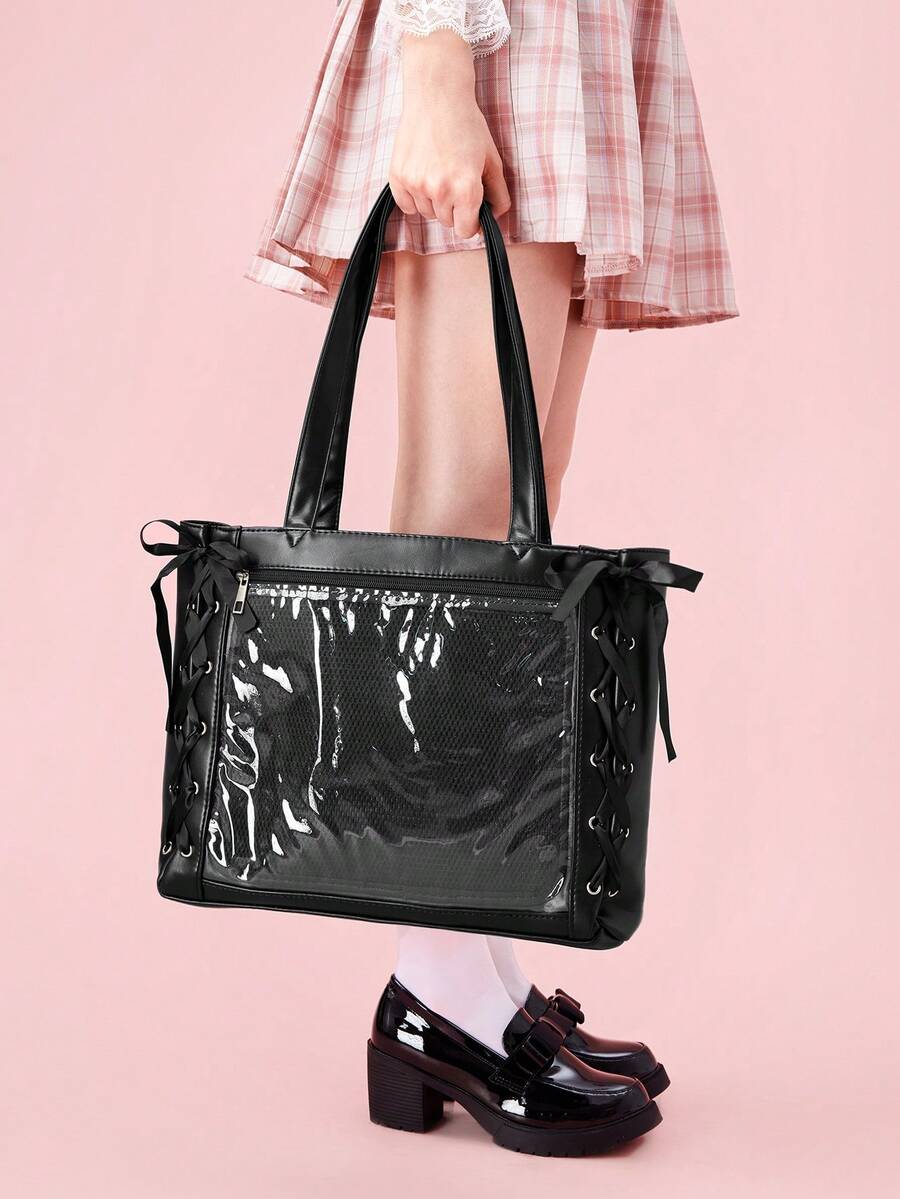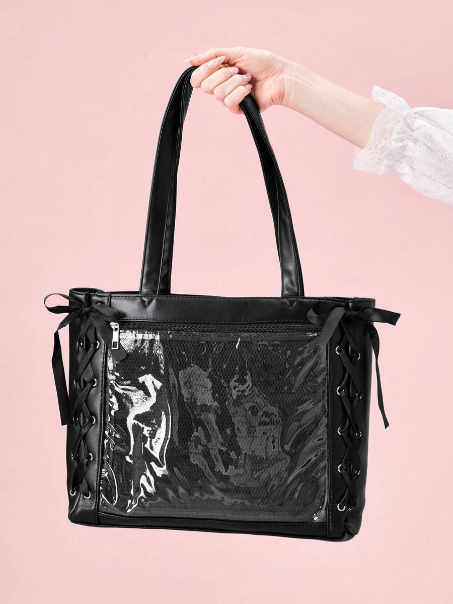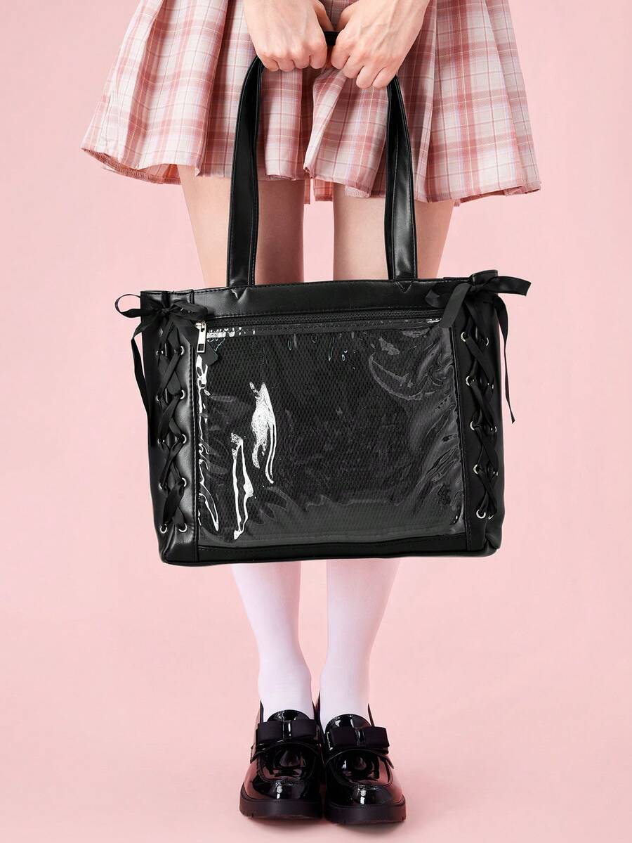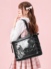 J-Fashion Cute Transparent Shoulder Bag For Teenage Girls, With Bow Decoration, Large Capacity, JK School Uniform Style, Handheld Or Underarm Bag, Japanese Casual Bag