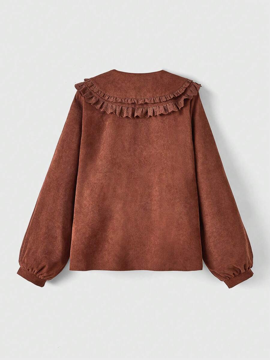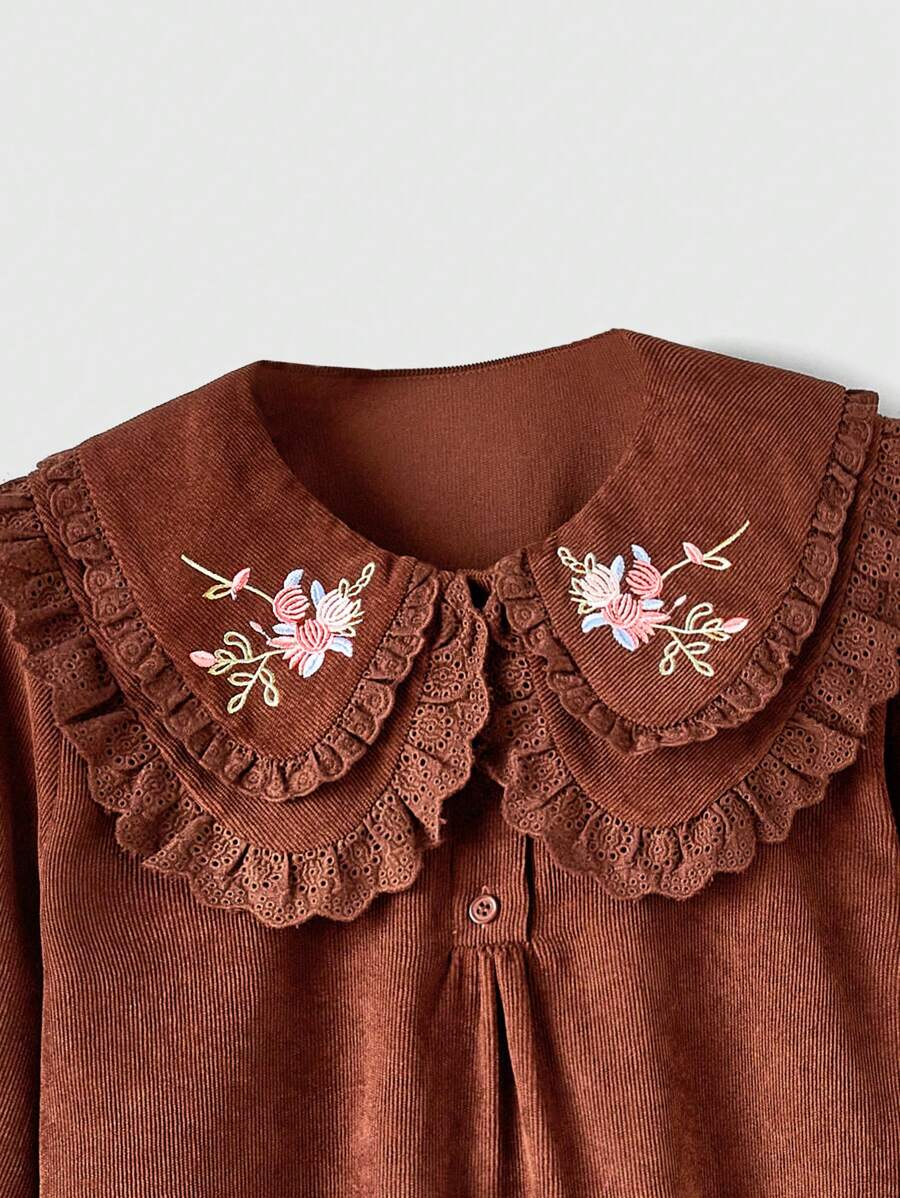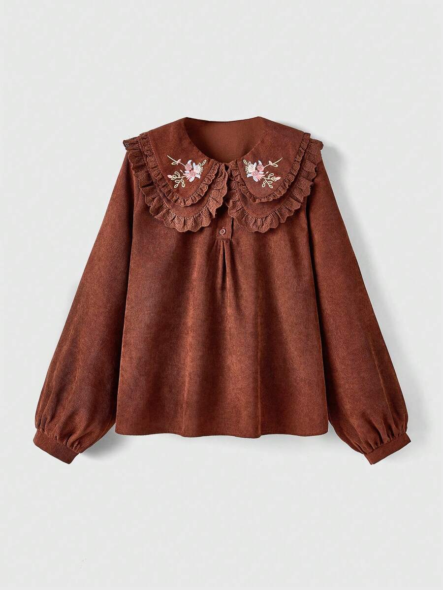 J-Fashion Cute Women's Loose Fit Embroidered Peter Pan Collar Shirt