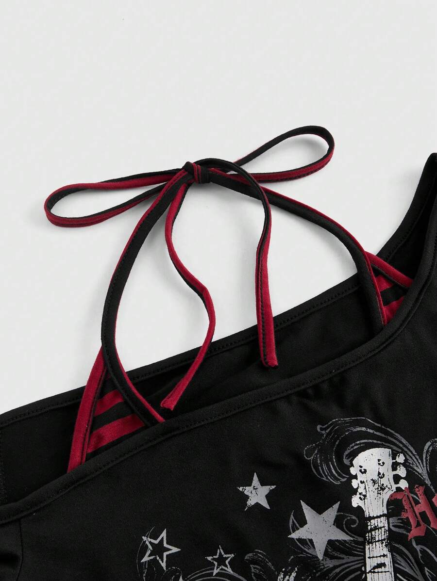 J-Fashion Gyaru Summer Beach Concert Women Rave Festival Streetwear Y2K Sexy Asymmetrical Shoulder Contrast Stripe T-Shirt