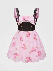 J-Fashion Plus Size Elegant Contrast Color Floral Print Summer Dress