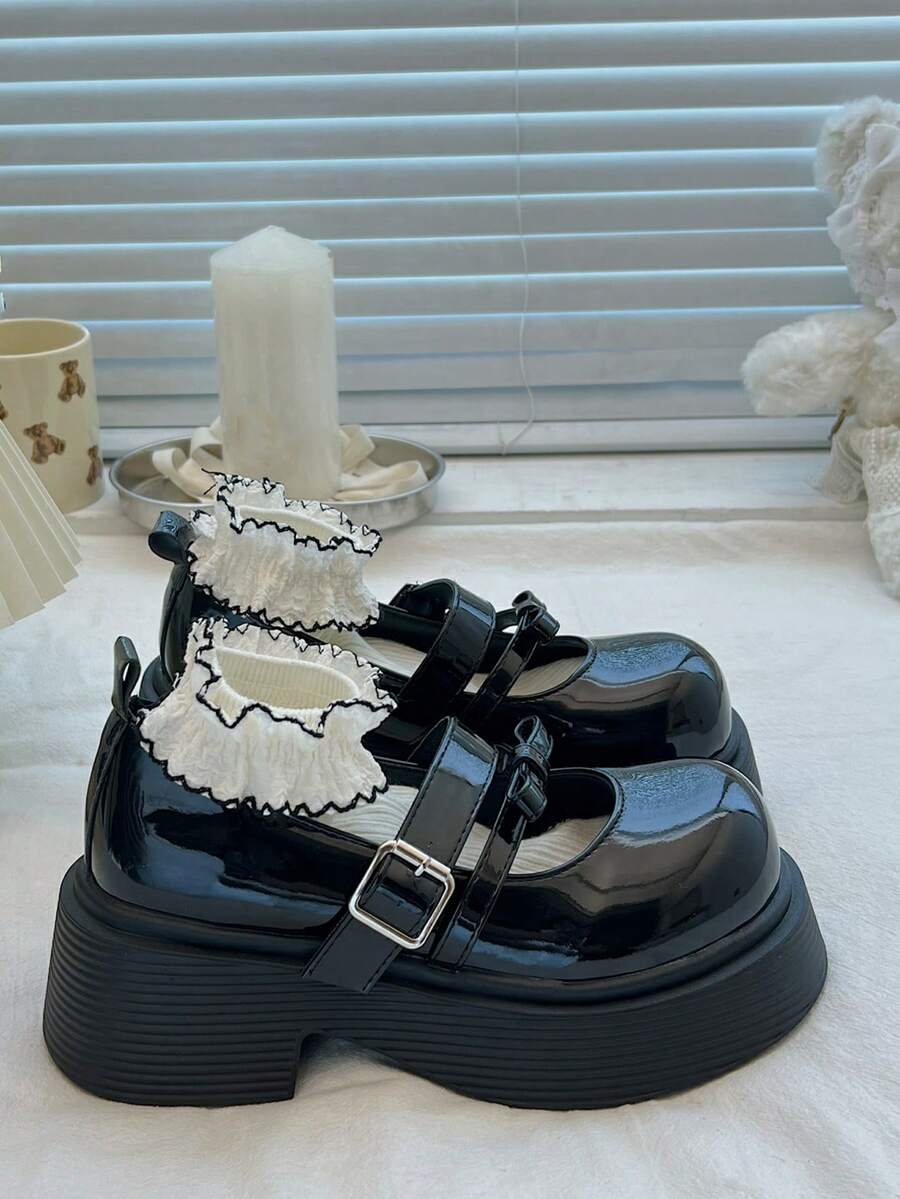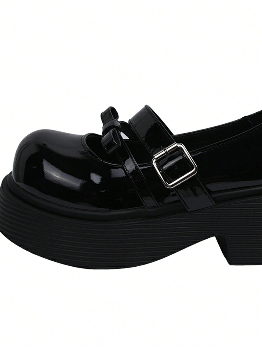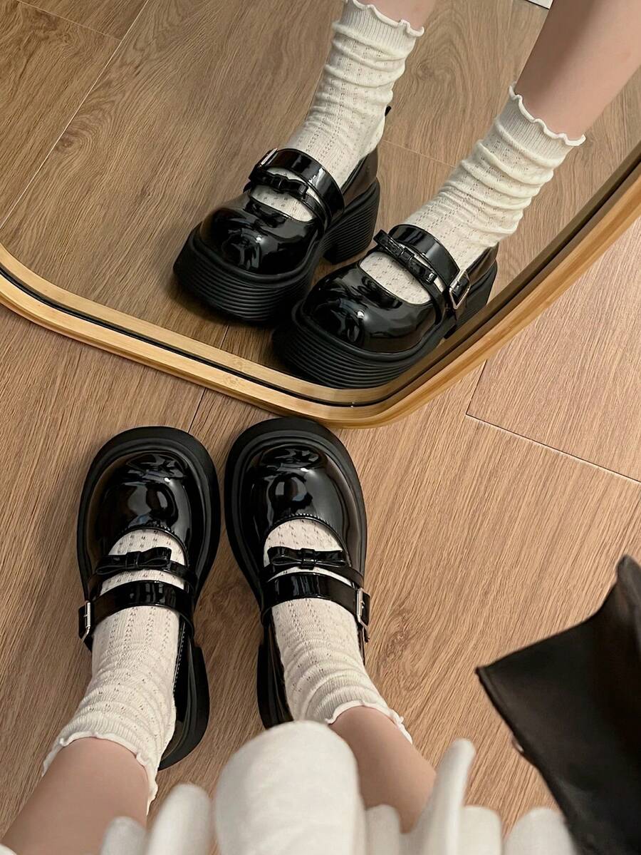 J-Fashion Retro Goth Style French Thick Soled Mary Jane Shoes With Bow & Buckle Design