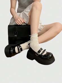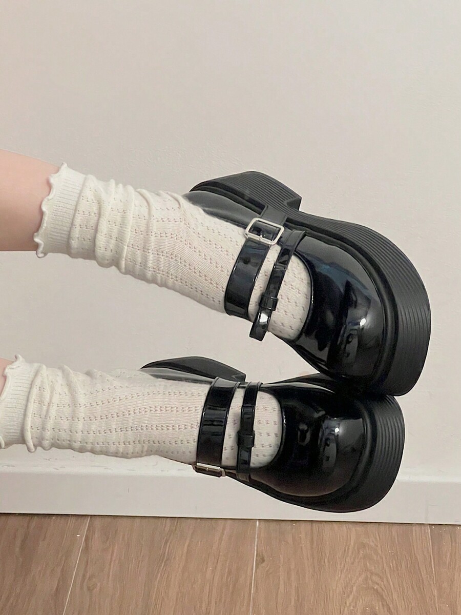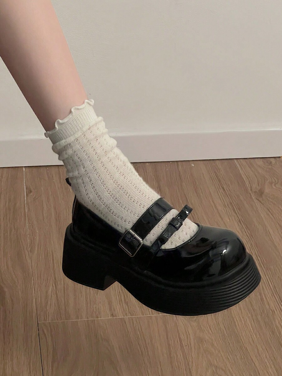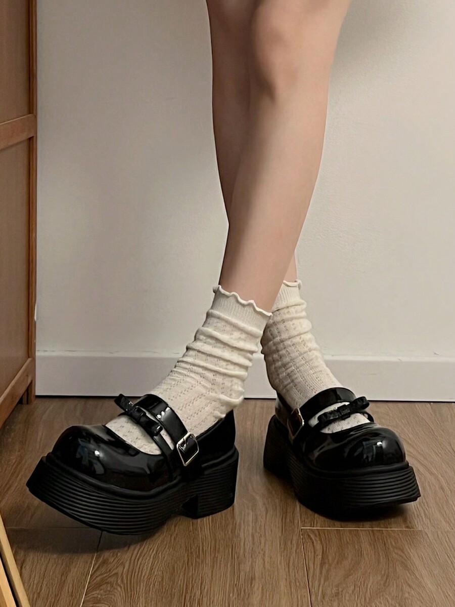 J-Fashion Retro Goth Style French Thick Soled Mary Jane Shoes With Bow & Buckle Design