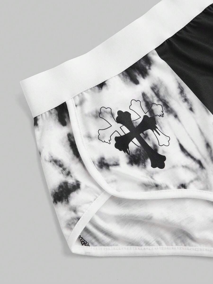J-Fashion Tie-Dye Color Block Fun & Funny Skeleton & Cross Print Ladies' Pajama Set