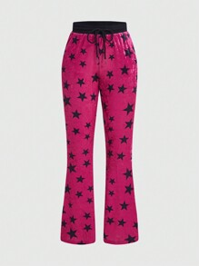 J-Fashion Velvet Skinny Flared Pants Featuring Starry Print All Over
