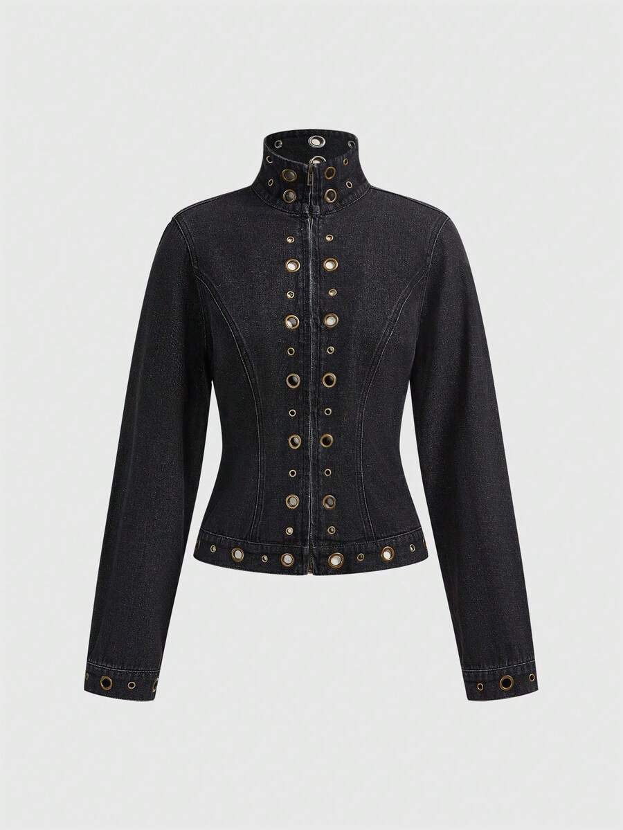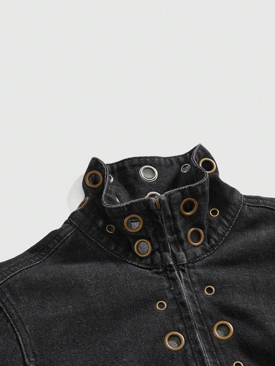 J-Fashion Vintage Distressed Rivet Punk Rock Biker Denim Jacket For Women