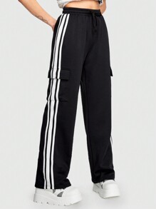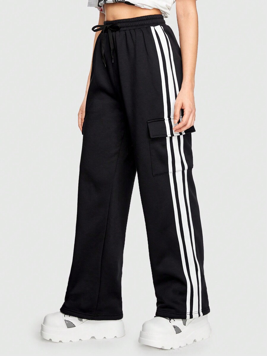 J-Fashion Women'S Casual And Athletic Sweatpants With Striped Weave Detail