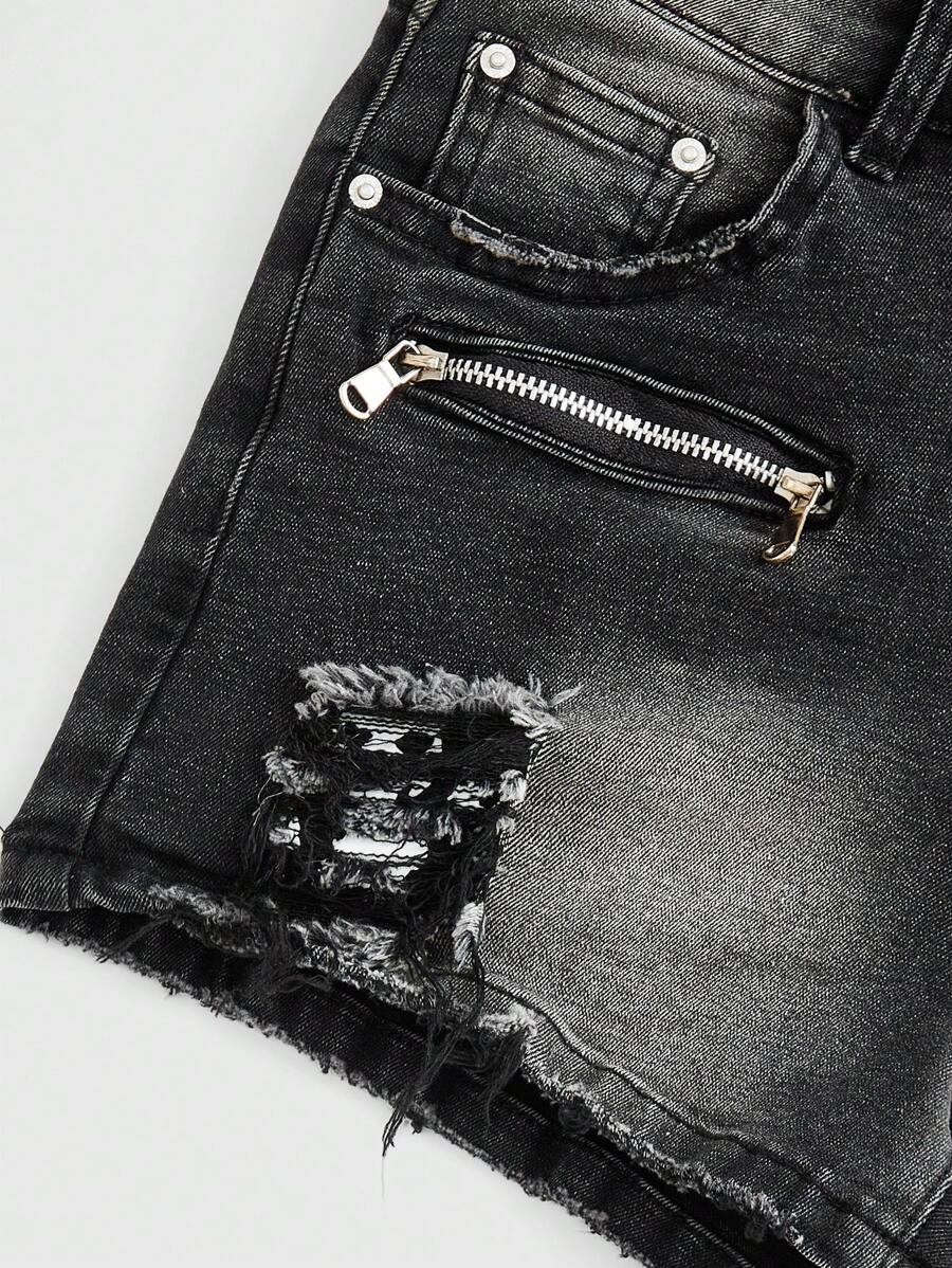 J-Fashion Women Zipper Ripped Denim Shorts For Everyday Wear In Spring Summer