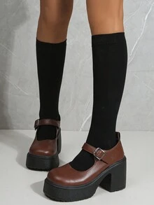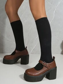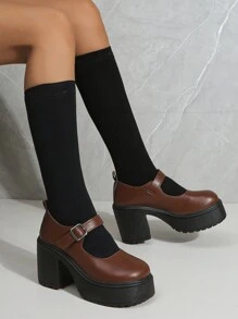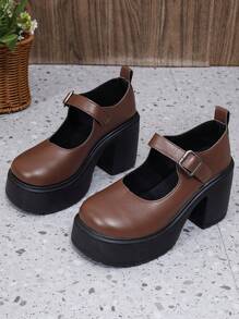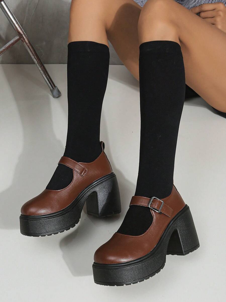 J-Fashion Women's 2024 New Mori Style Brown Mary Jane Shoes With Thick Bottom, Preppy Style