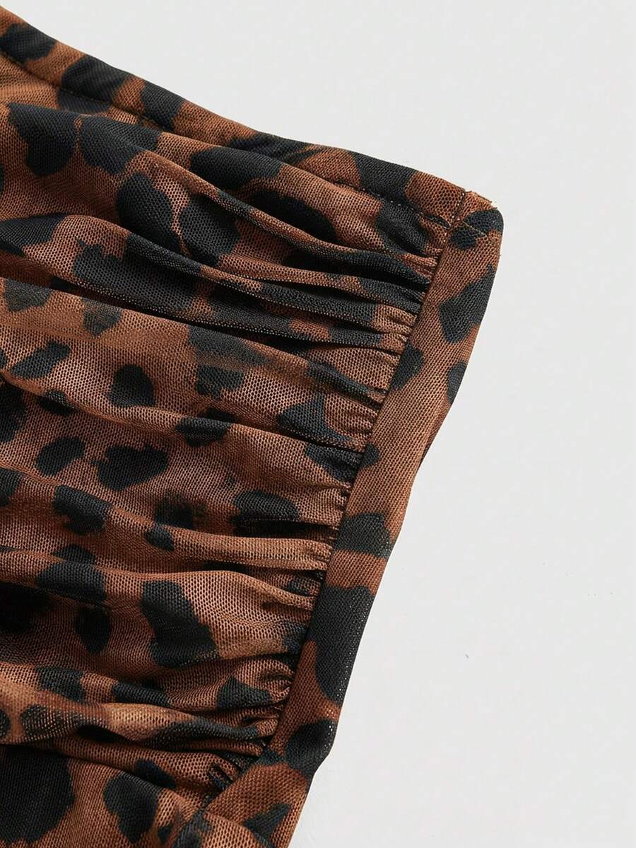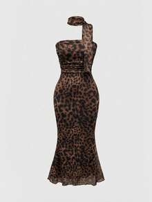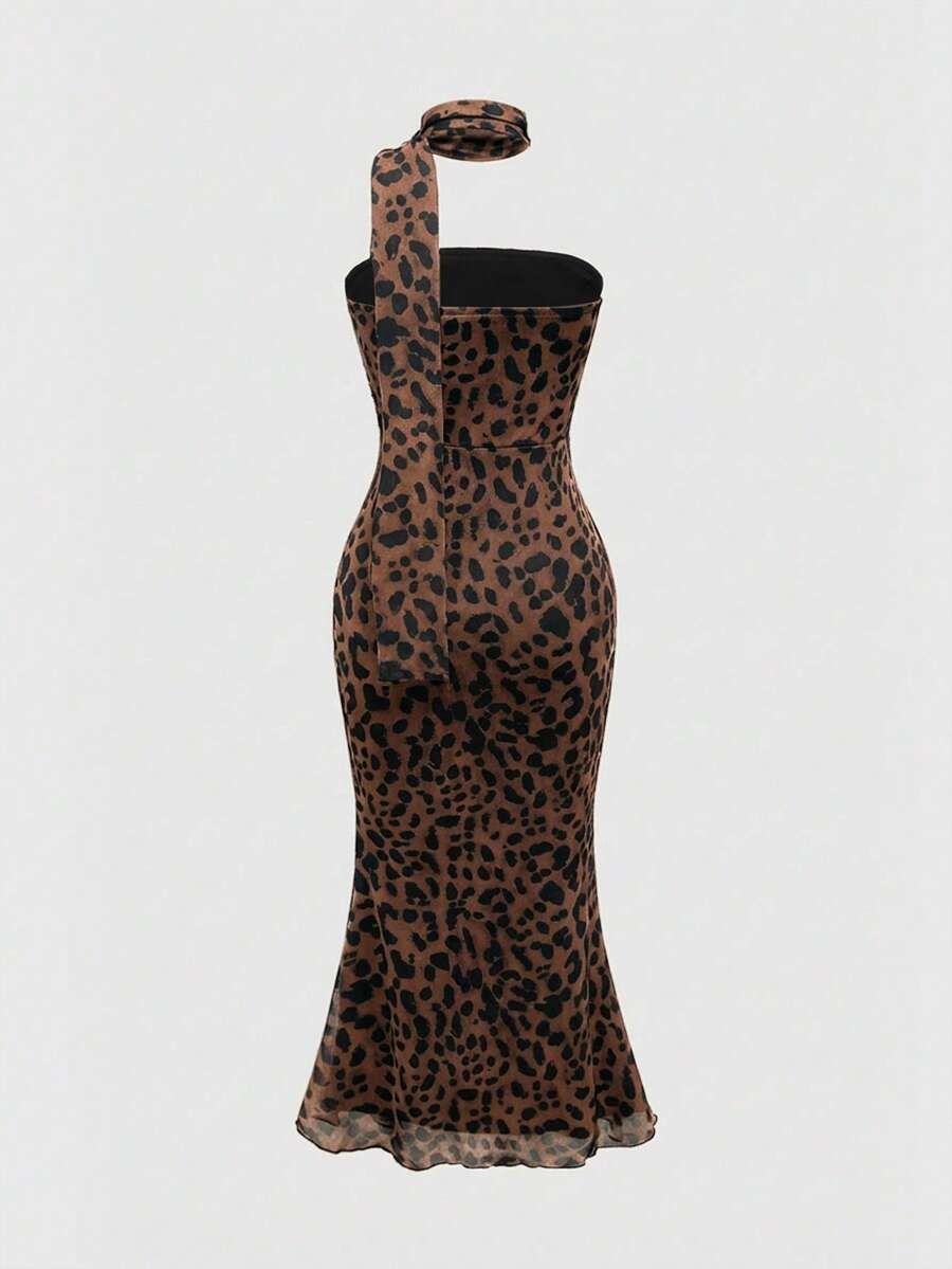 J-Fashion Women's Bodycon Spaghetti Strap Leopard Print Fishtail Dress