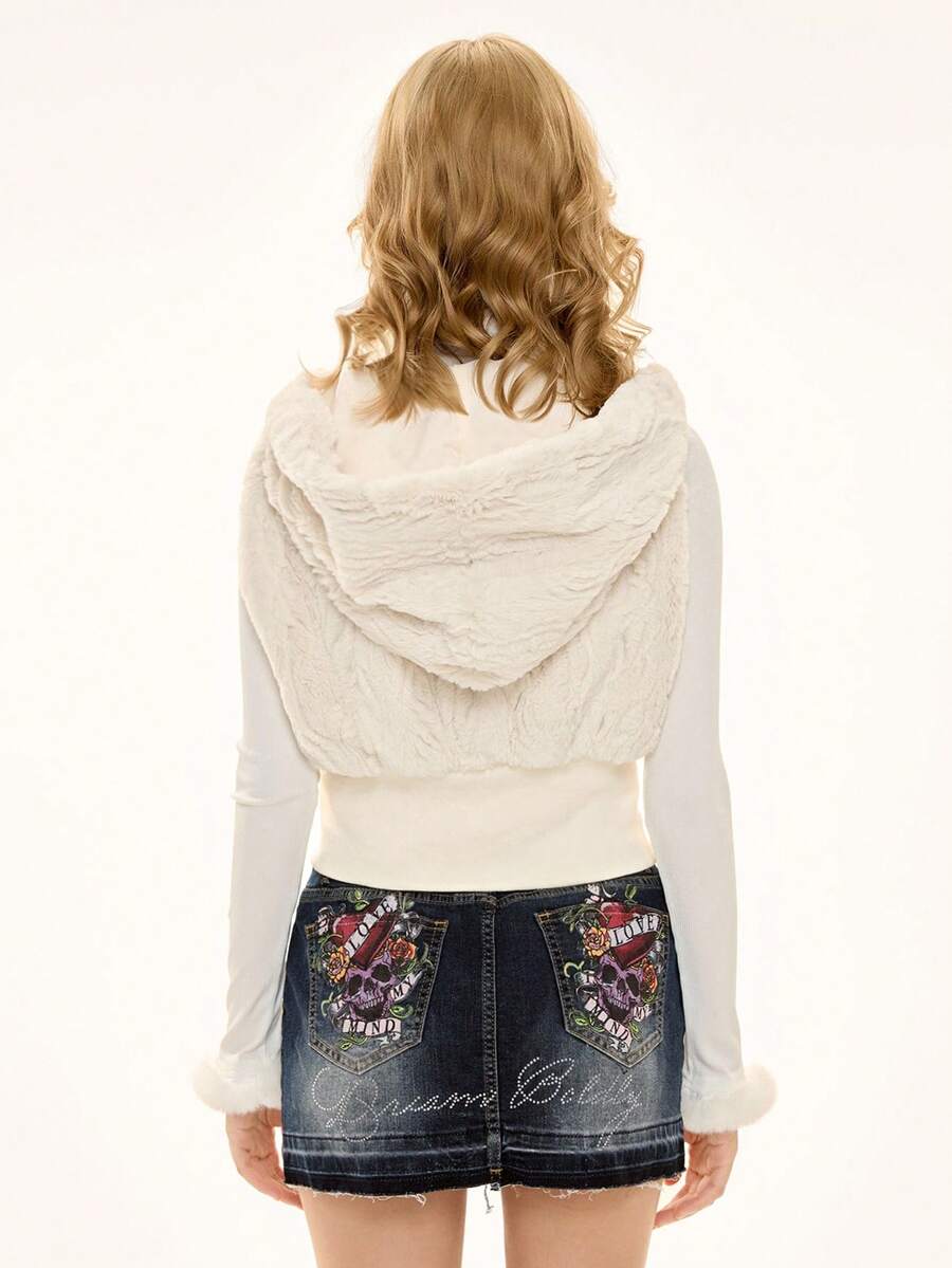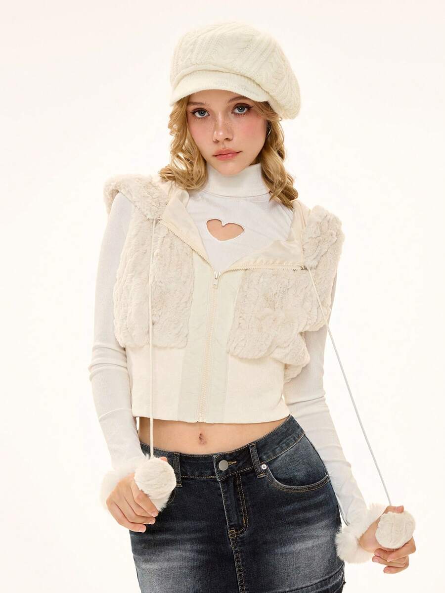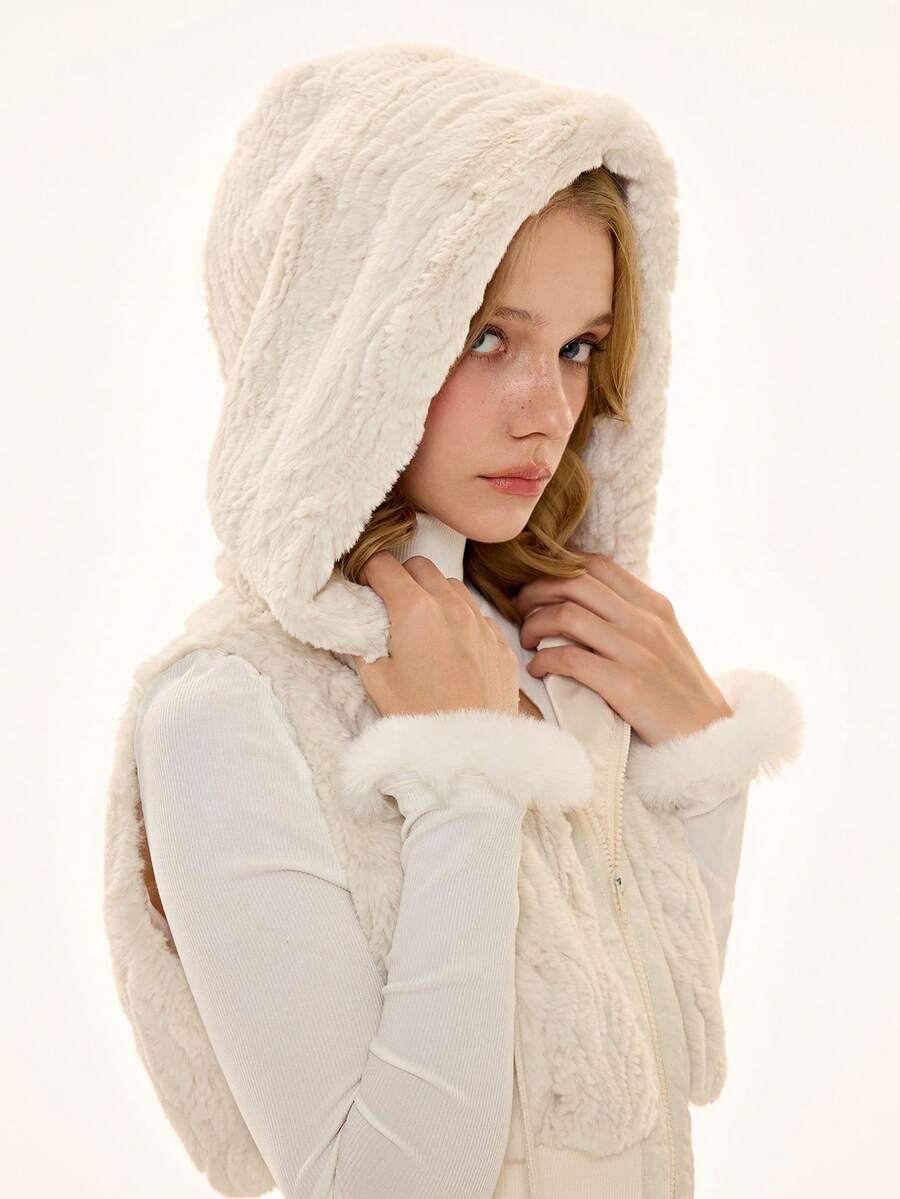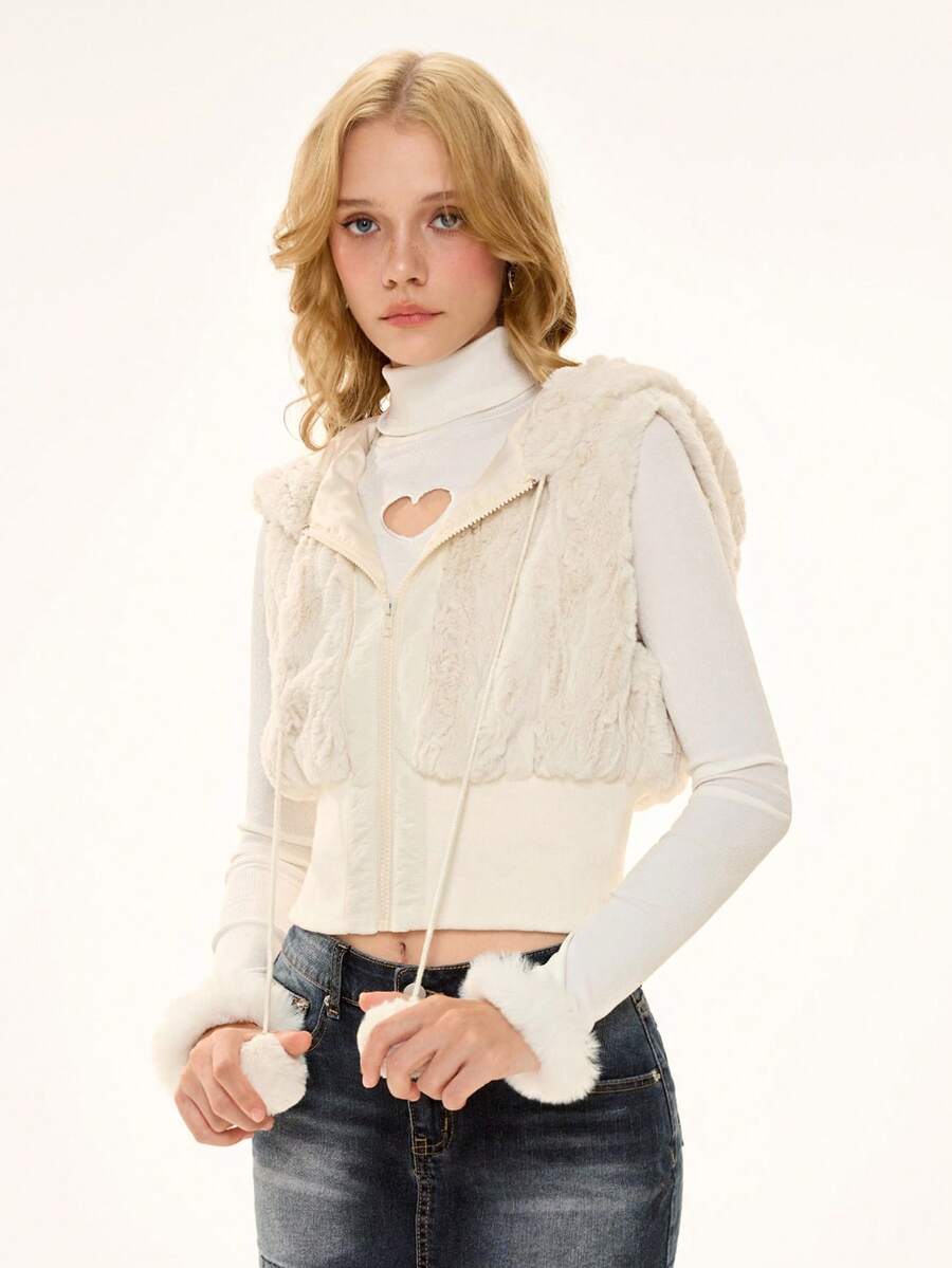 J-Fashion Women's Fashion Faux Fur Hooded Sleeveless Jacket