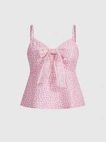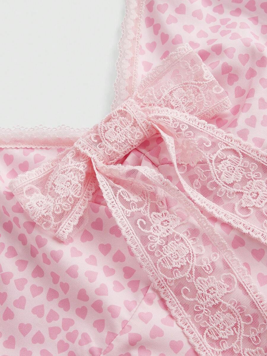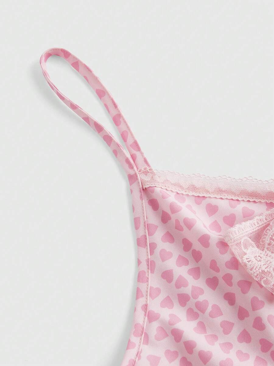 J-Fashion Women's Heart Printed Lace Patchwork Ribbon Strap Camisole Top