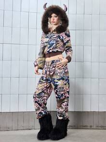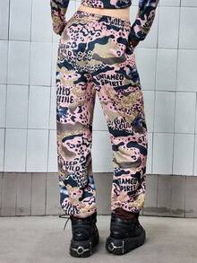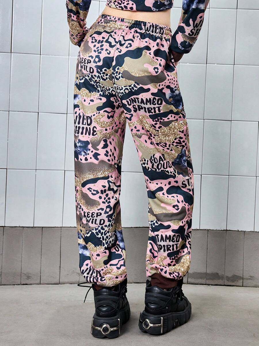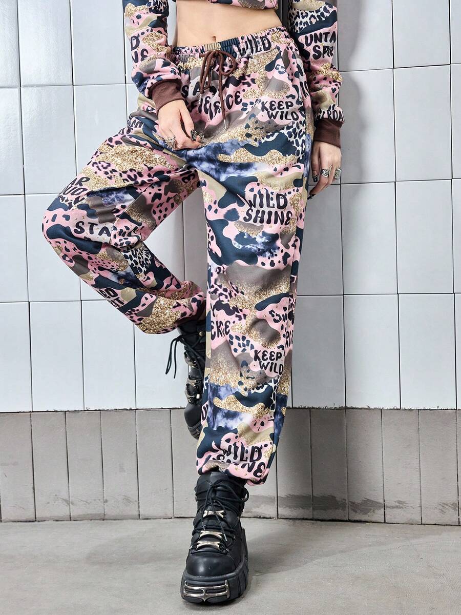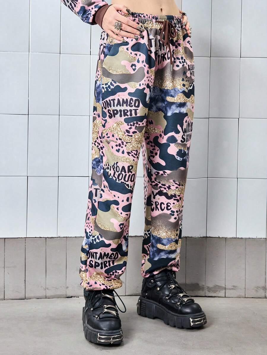 J-Fashion Women's Retro Y2K Baddie Street Camo Logo Graphic Sweatpants