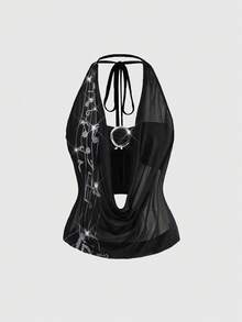 J-Fashion Women's Rhinestone Embellished Halter Neck Sleeveless Top