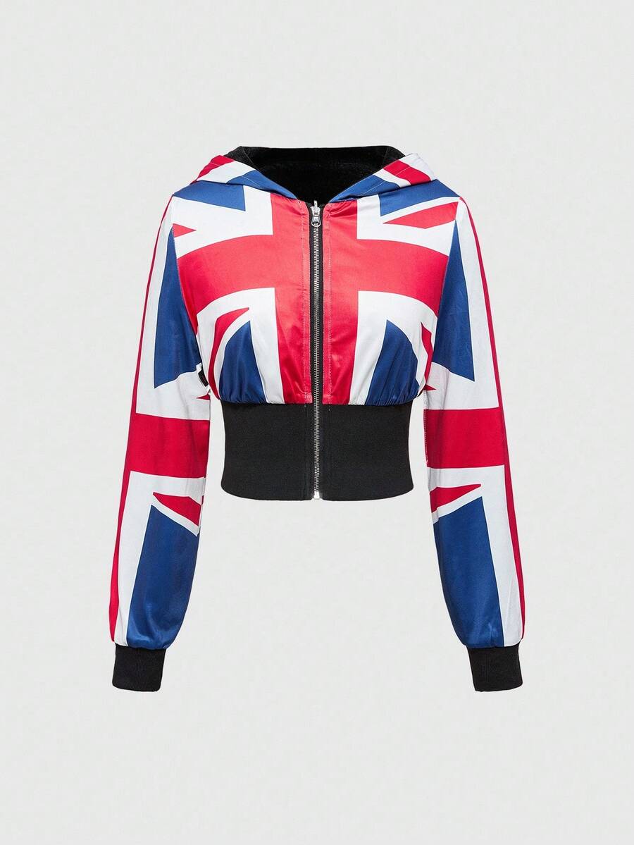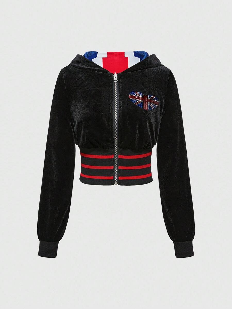 J-Fashion Y2K Baddie Abby Flag English Rhinestone Velvet Bodycon Sweatshirt For Women