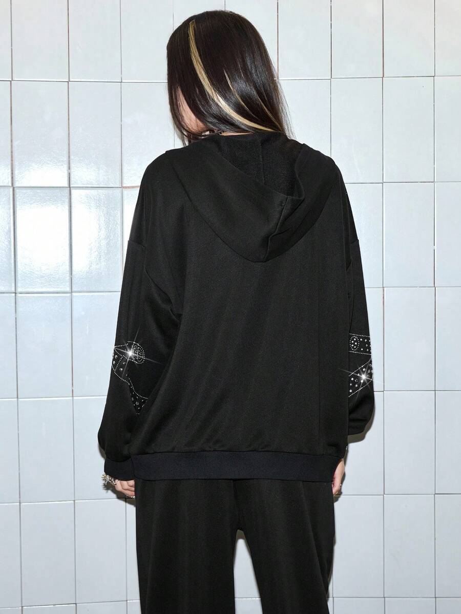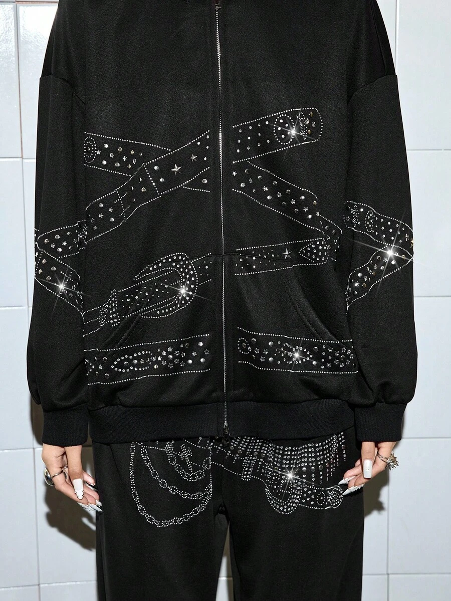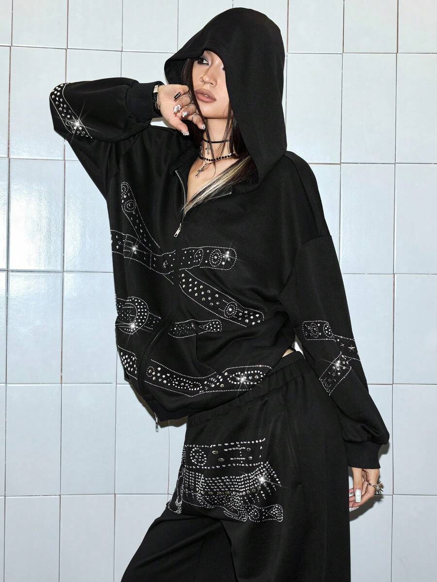 J-Fashion Y2K Casual Punk Rivet Waist Belt Print Oversized Women Sweatshirt