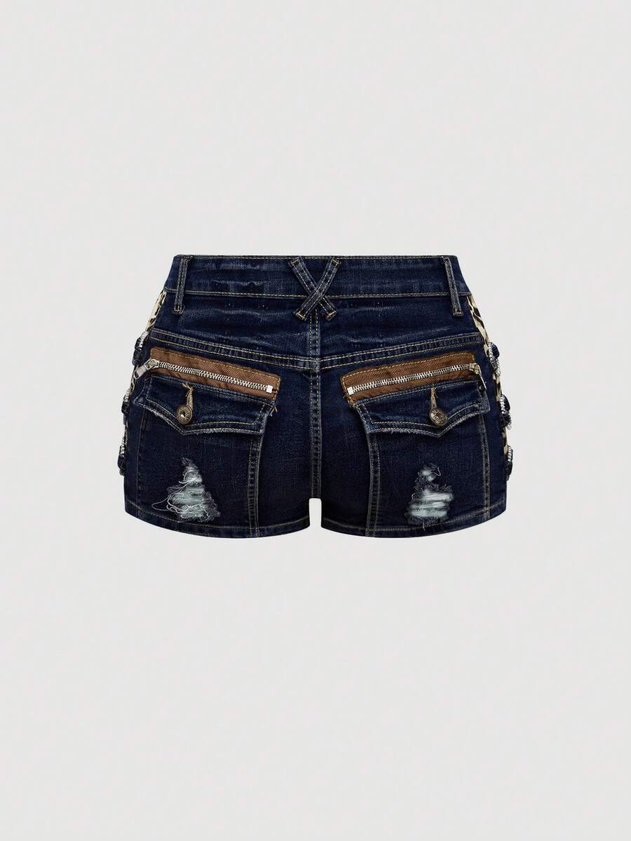 J-Fashion Y2K Gyaru Harajuku Midriff Leopard Print Vintage Low Waist Skinny Super Low Waist Women Kpop Denim Shorts