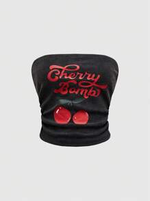 J-Fashion Y2K Sexy Cherry Print Knitted Crop Top For Women