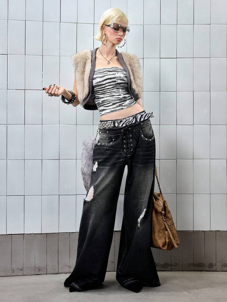 J-Fashion Y2K Sexy Glittery Sequin Embroidered Zebra Print Women Camisole