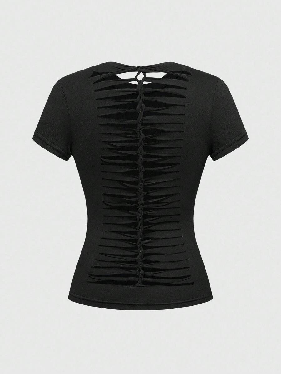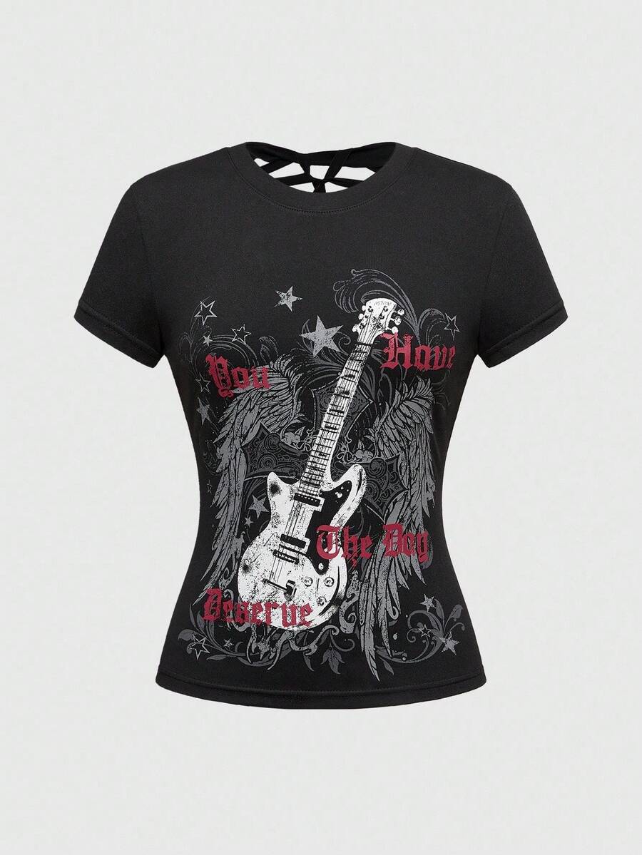 J-Fashion Y2K Sexy Vine Guitar Wings & Star Print Hollow Out Crop Top For Women