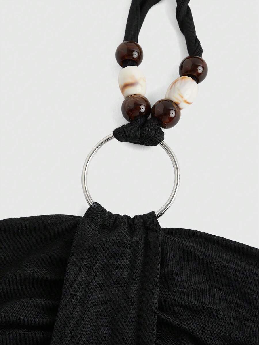 J-Fashion Y2K Style Metal Circle Beaded Halter Backless Sleeveless Dress