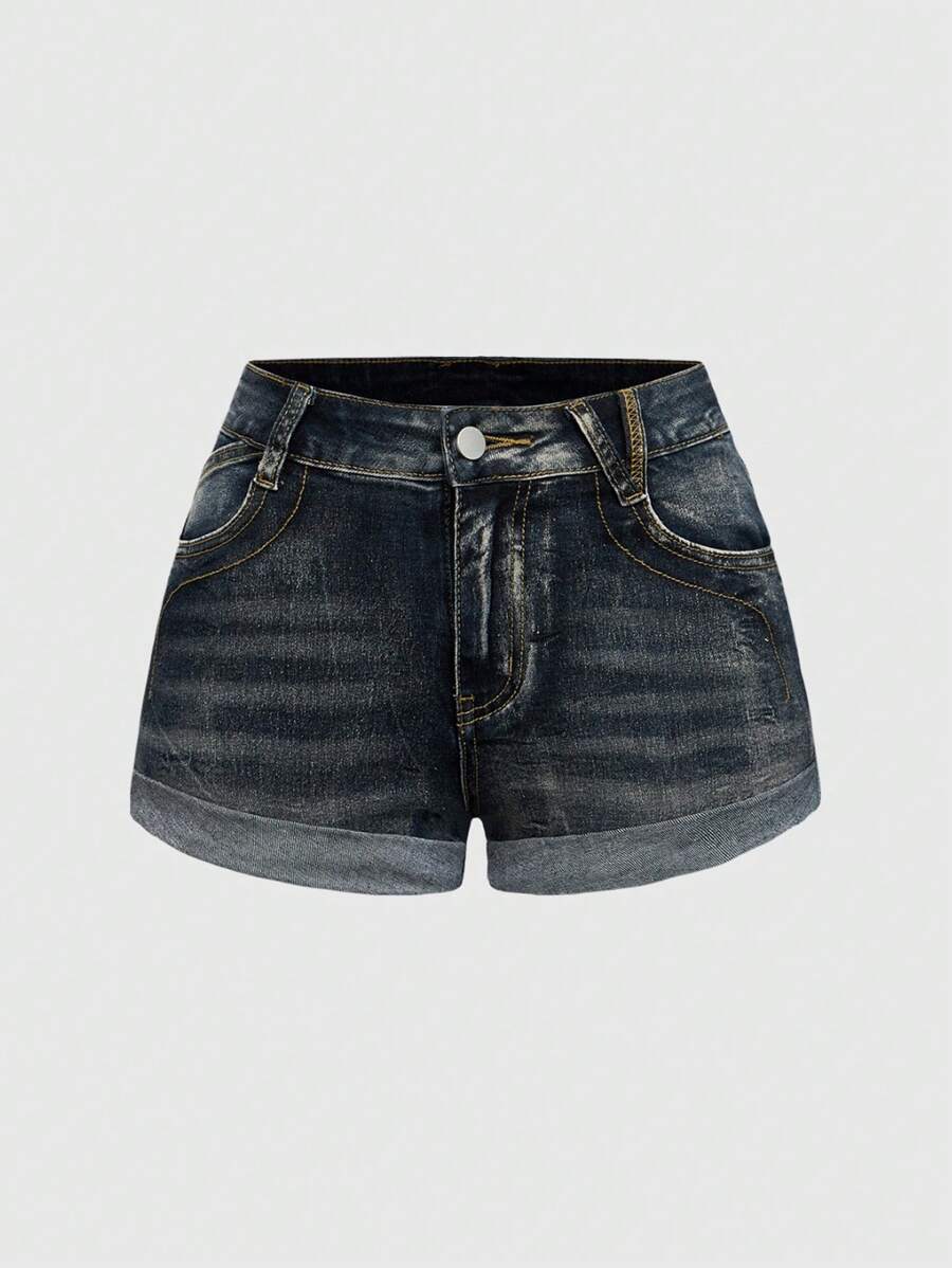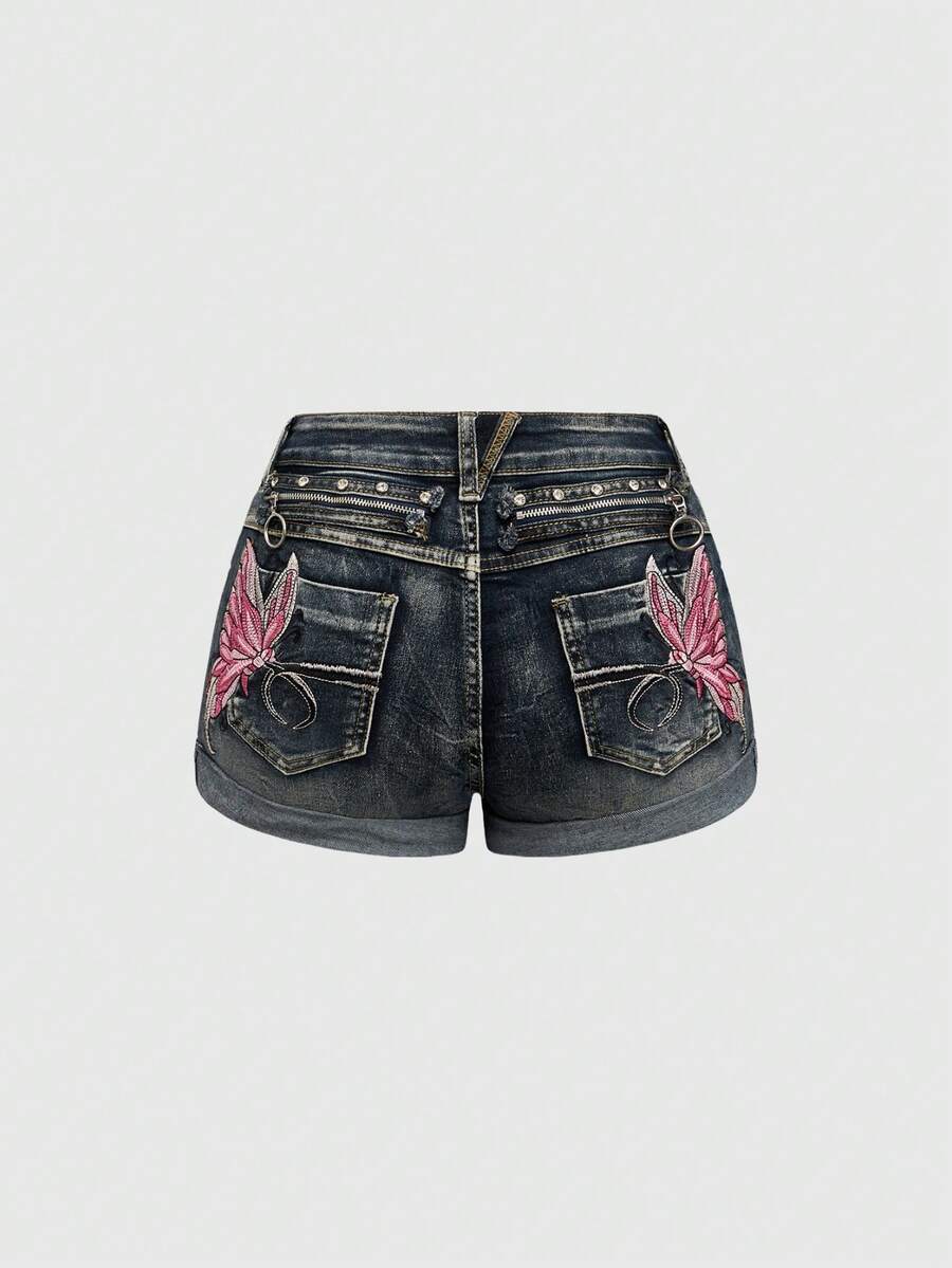 J-Fashion Y2K Style Sexy Distressed Low Waist Butterfly Embroidered Skinny Denim Shorts