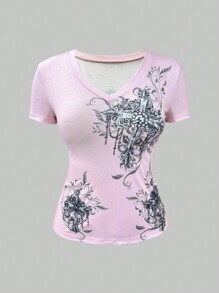 J-Fashion Y2K Subculture Shibuya Cross Print Pink Women's T-Shirt