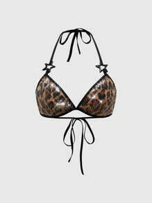 J-Fashion Y2K Subculture Shibuya Leopard Print Sequins Halter Bralette